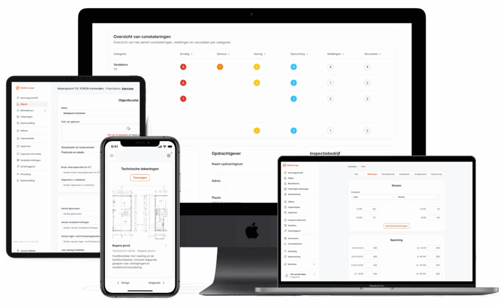 Met Elektra-app leg je eenvoudig alle benodigde informatie vast. Zowel op kantoor (Web) als op locatie (iOS, Android) of eventueel offline. Samenwerken wordt zo een stuk makkelijker.